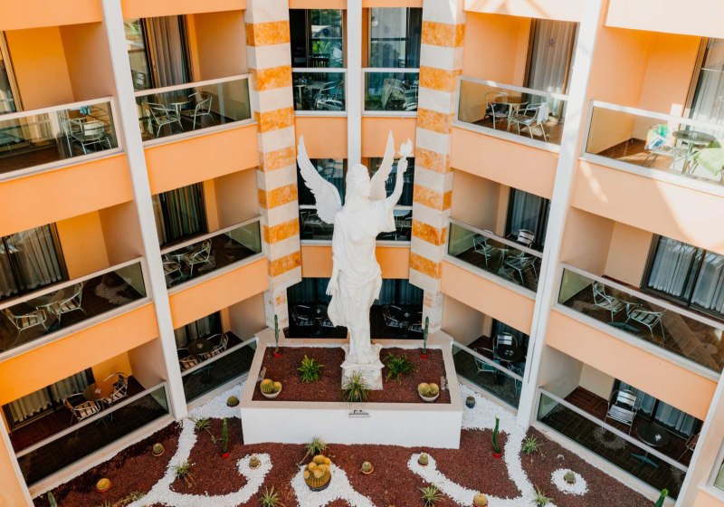 Die Anlage umfasst mehrere Gebäude mit fünf bis sechs Etagen und Aufzügen. In der Empfangshalle erwarten Euch die 24-Stunden-Rezeption und WLAN im Rezeptionsbereich inklusive. Draußen entspannt Ihr am Süßwasserpool mit Sonnenterrasse; zwei Kinderbecken schaffen eigene Bereiche für die Kleinen.