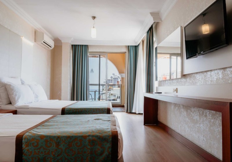 Taç Premier Hotel & Spa verbindet die Nähe zum Kleopatra-Strand mit einer strukturierten Anlage, klaren Abläufen und breitem Programm. Ihr bewegt Euch zwischen Meer, Pool, Spa und Stadt mit kurzen Wegen und plant Euren Tag flexibel – von Aktivzeit bis entspannter Pause.