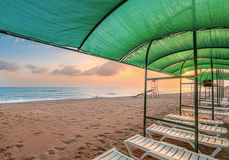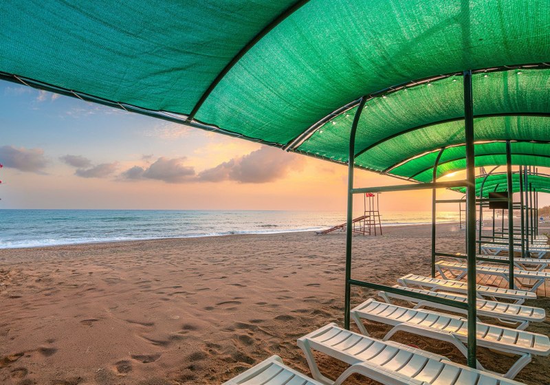 Ihr urlaubt in Alanya‑Konakli, nur etwa 150 Meter vom Sand‑Kies‑Strand entfernt. Ein hoteleigener Abschnitt erleichtert Euch den Tag am Meer, die Beachbar liefert Erfrischungen direkt am Wasser. Bis ins Zentrum von Alanya sind es rund 12 Kilometer; Konakli erreicht Ihr nach circa 800 Metern. Der Flughafen Gazipasa liegt etwa 54 Kilometer entfernt.