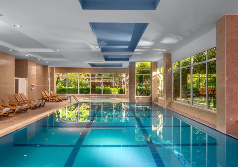 - Innen & Dampfbad: Hallenbad, Sauna, Dampfbad und Hamam ergänzen den Poolbereich.