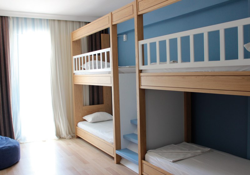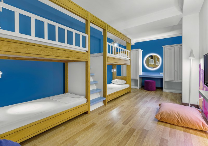 Für mehr Platz stehen große Doppelzimmer mit Etagenbett bereit. Familien wählen Zimmer mit zwei Räumen und Verbindungstür. Babybetten erhaltet Ihr auf Anfrage in Familienzimmern und großen Standardzimmern. So findet Ihr die passende Basis – vom kompakten Rückzugsort bis zur familientauglichen Aufteilung. Highlight: Familienzimmer mit zwei Räumen und praktischer Verbindungstür.