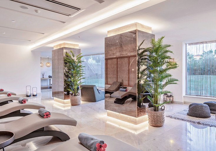 Der Wellnessbereich bündelt klassische Erholung: Sauna, Türkisches Bad (Hamam) und ein Spa mit Massagen, Anwendungen und Beautybehandlungen. Die Nutzung des Spa ist ab 16 Jahren vorgesehen, was dem Bereich eine ruhige, erwachsene Ausrichtung gibt. So findet Ihr nach Strand- und Poolstunden konzentrierte Entspannung.