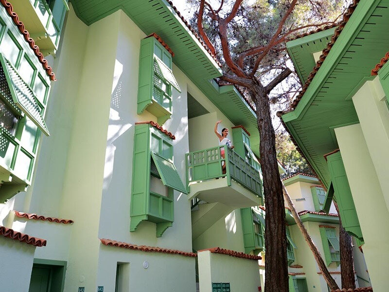 Im weitläufigen Bungalow-Resort Ulusoy Kemer Holiday Club wohnt Ihr in ein- bis zweistöckigen Gebäuden, die sich zwischen Pinien und Wegen bis zum Sand-/Kieselstrand von Göynük ziehen. Die Atmosphäre wirkt lebendig, ohne hektisch zu sein. Tagsüber locken Pools und Meer, abends das Amphitheater und die gepflegten Gartenbereiche.