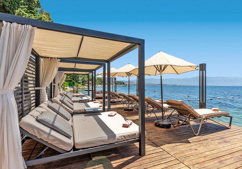 - Direkt am Wasser: Meerlage mit Strandbar, Liegen und strukturiertem Zugang.