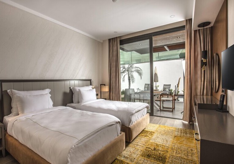 Mit Swim-up-Zimmern, Familiensuite mit privatem Pool, Wellness rund um Hamam und Sauna sowie vielseitigen Wassersportarten richtet sich das Haus an Paare, Freundesrunden und Familien. Eine Minibusverbindung bringt Euch in etwa 5 Kilometern ins Zentrum – Meer und Stadt bleiben nah beieinander.