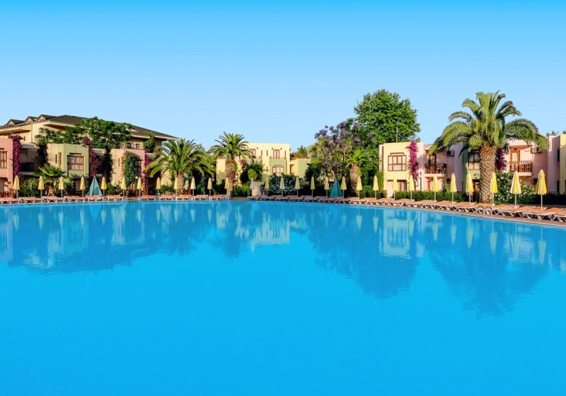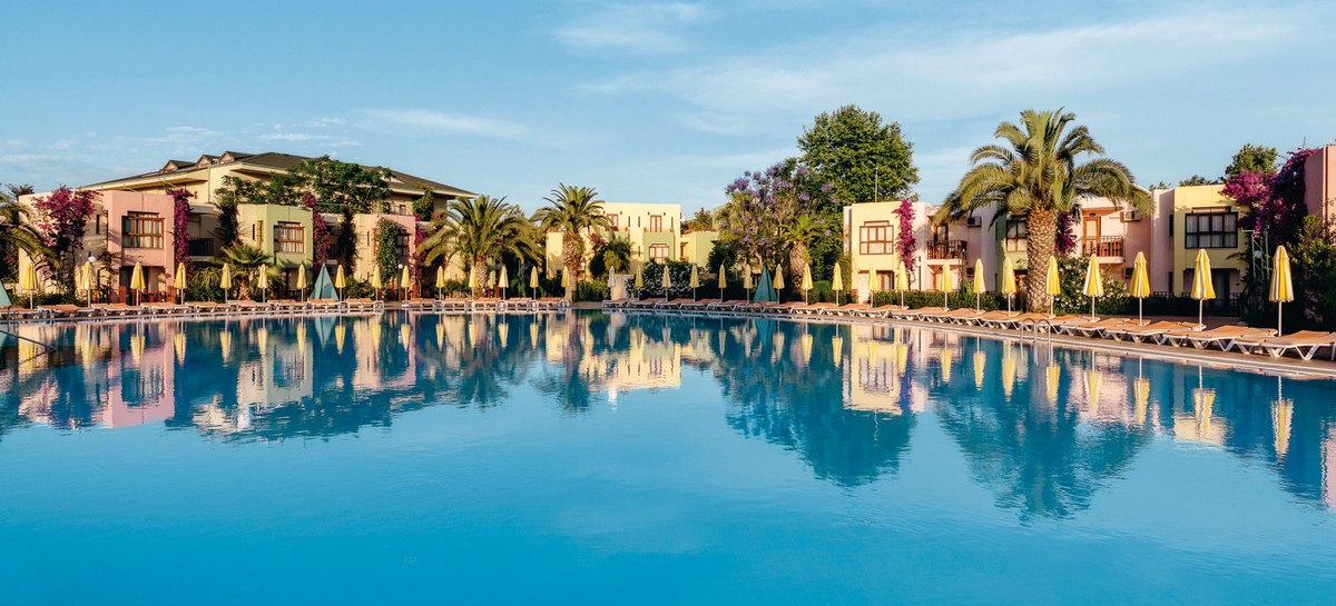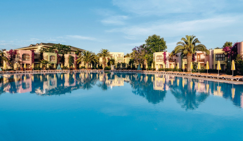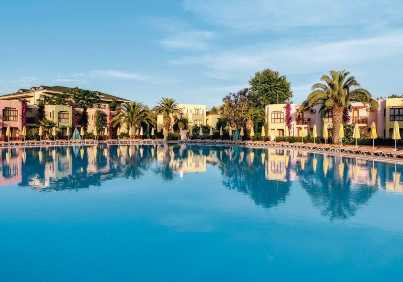 Die Anlage ist weitläufig angelegt: Gartenwege verbinden Lobby, Geschäfte und Pools mit Sonnenterrassen. Badetücher, Liegen, Auflagen und Sonnenschirme sind an Pool und Strand inklusive. Zwei Süßwasserpools und ein Kinderbecken strukturieren das Badeleben, WLAN steht in der Lobby kostenfrei bereit.