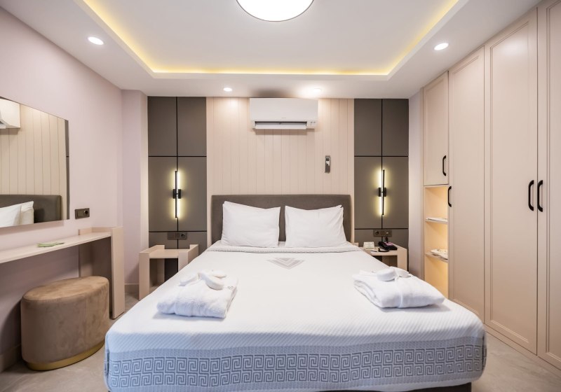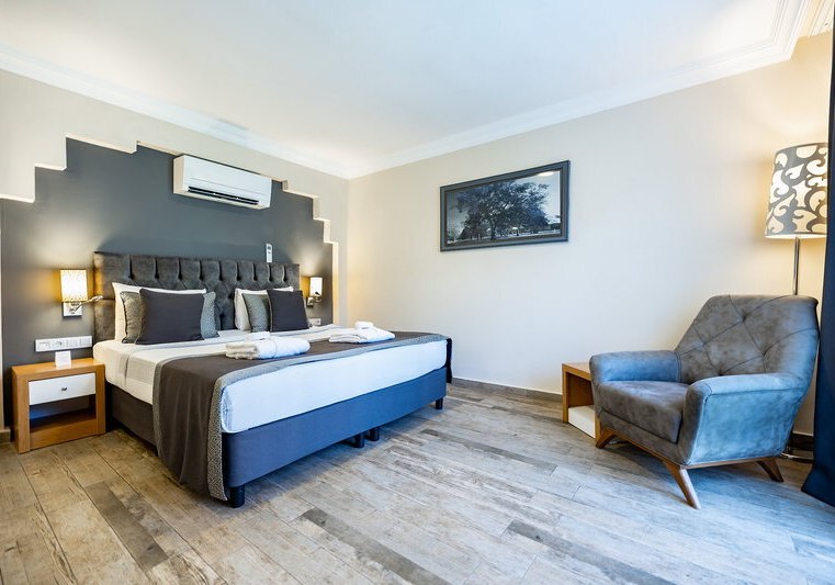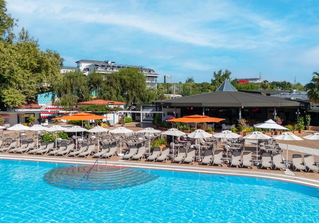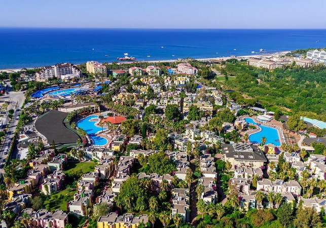Ihr urlaubt in Side-Colakli, rund 300 Meter vom privaten Sandstrand entfernt. Nach Side sind es etwa 12 Kilometer, alternativ führt die Promenade in ungefähr 10 Kilometern dorthin. Direkt vor dem Hotel liegt eine Taxi- und Minibus-Haltestelle, wodurch Ausflüge und kurze Wege komfortabel möglich werden.