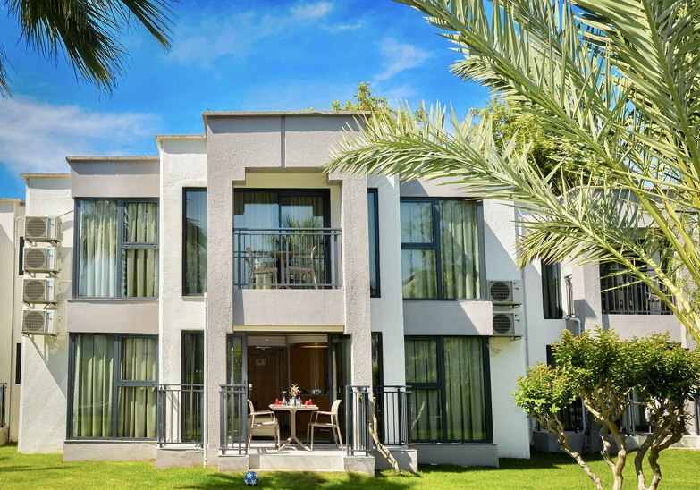Im VONRESORT Golden Beach wohnt Ihr in Side-Colakli in weitläufigen, dreigeschossigen Bungalowgebäuden mit Gartenanlage. Die Wege führen Euch von der Lobby mit Sitzgruppen über Sonnenterrassen zu Süßwasserpools und weiter Richtung privatem Sandstrand. Das Gefühl: lebendig, dank Animation und Shows, zugleich entspannt durch viele Rückzugsflächen im Grünen und rund um die Pools.