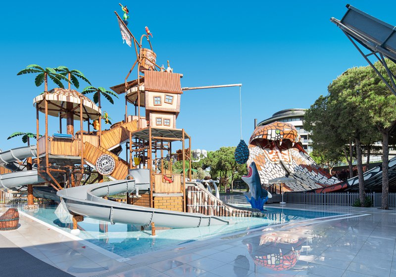 Tagsüber erwartet Euch ein strukturiertes Animationsprogramm für Erwachsene und Kinder. Abends wechselt die Bühne: Das Amphitheater setzt auf Shows, dazu kommen Live‑Musik und Mini‑Disco. Die Open‑Air‑Diskothek verlegt das Geschehen in die Nachtluft, während der kleine Vergnügungspark einen spielerischen Treffpunkt bildet.
