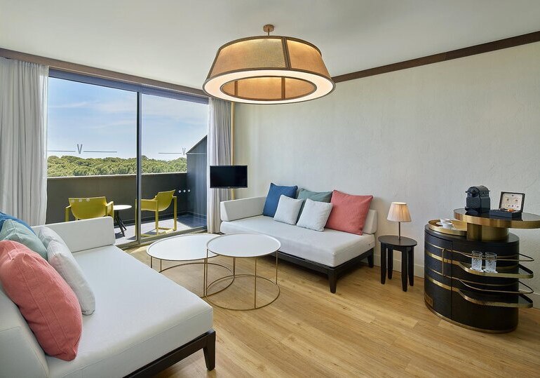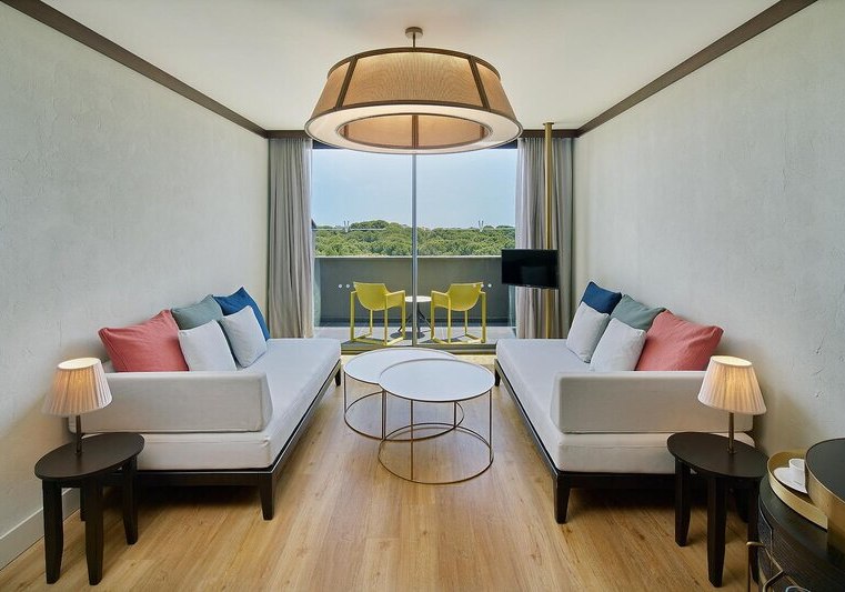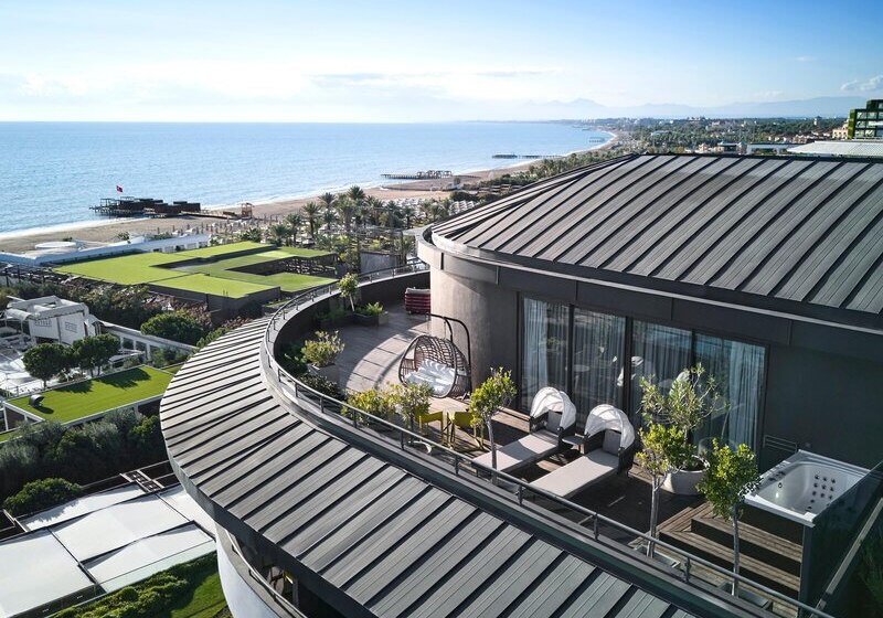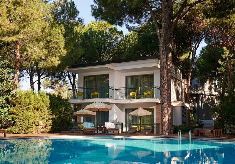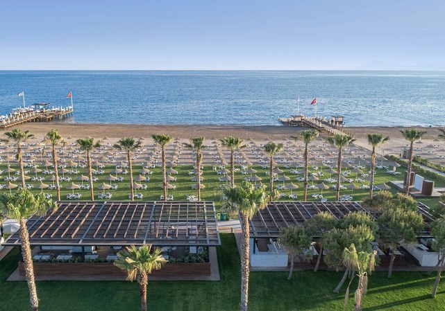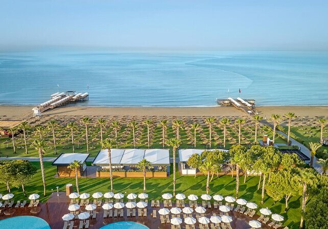 Im Voyage Belek Golf & Spa wohnt Ihr direkt am Sand‑Kiesstrand von Belek und bewegt Euch zwischen ruhigen Gartenzonen, lebendigen Poolbereichen und sorgfältig gestalteten Lounges. Die Anlage wirkt weitläufig, mit klaren Bereichen für Familien, Ruhesuchende und Aktivfans. Mit Amphitheater, Open‑Air‑Diskothek und kleinem Vergnügungspark erlebt Ihr Tage mit Struktur und Abende mit Programm.