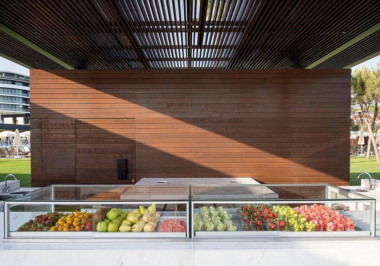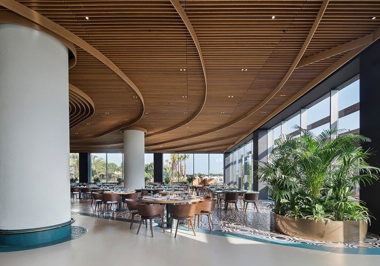 Die Hotelflächen sind sinnvoll verknüpft: kurze Wege vom Strand mit zwei Badestegen in die Restaurants, überdachte Zonen für Schatten, offene Terrassen für weite Blicke. Das Ambiente bleibt modern und serviceorientiert, vom 24‑Stunden‑À‑la‑carte‑Restaurant bis zur Comfort Zone mit Schließfächern, Dusche und Ruhebereich. So fühlt sich Euer Ablauf angenehm geplant an.