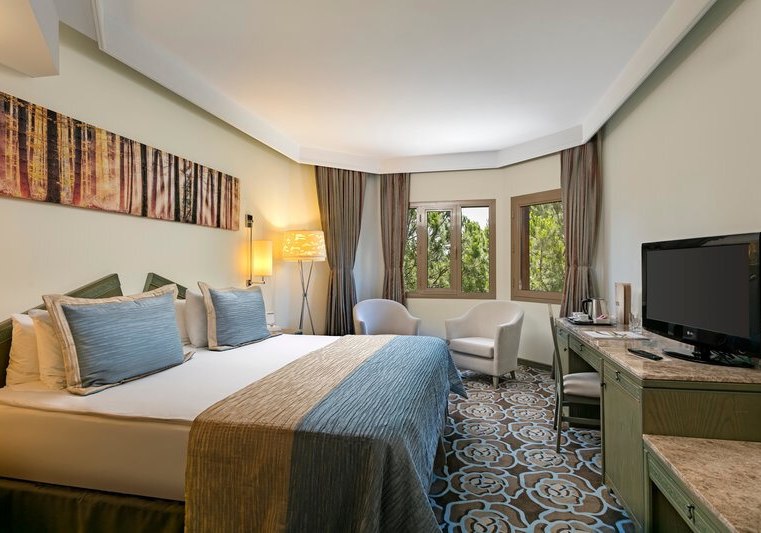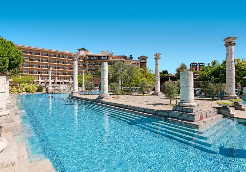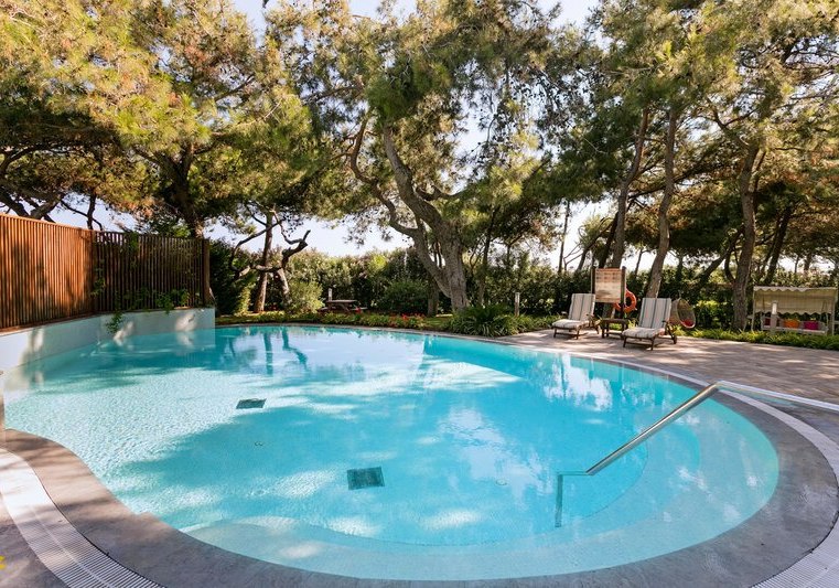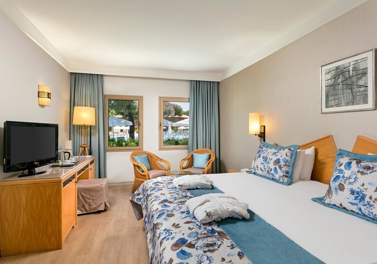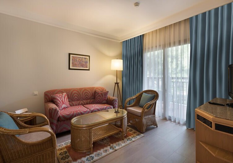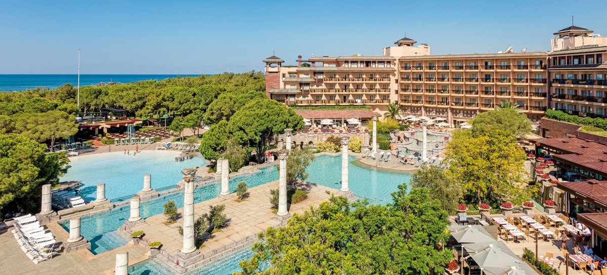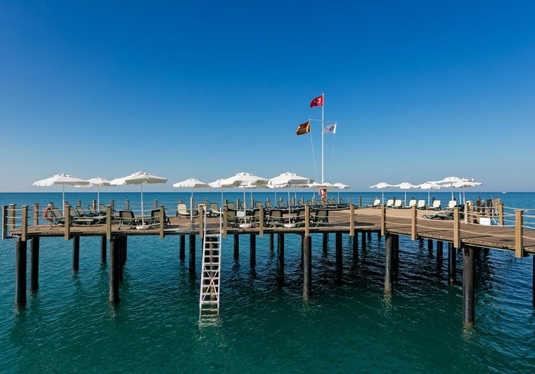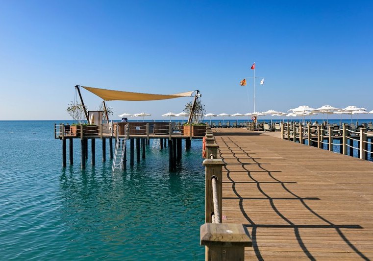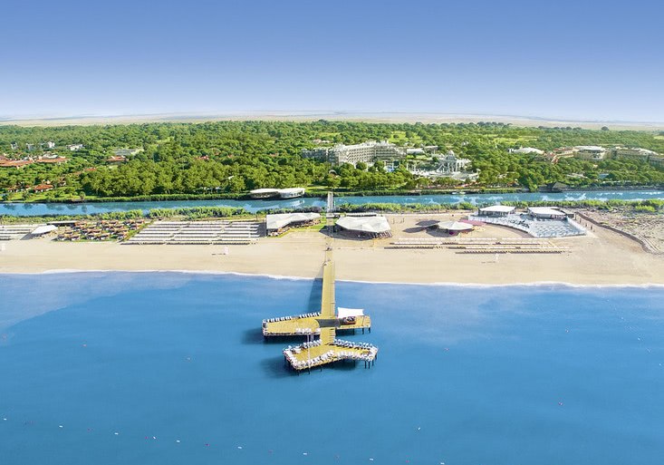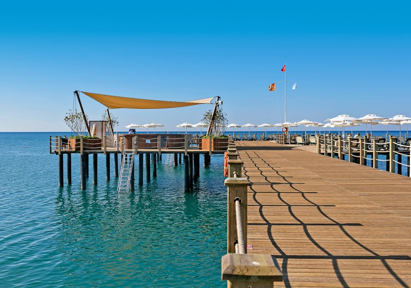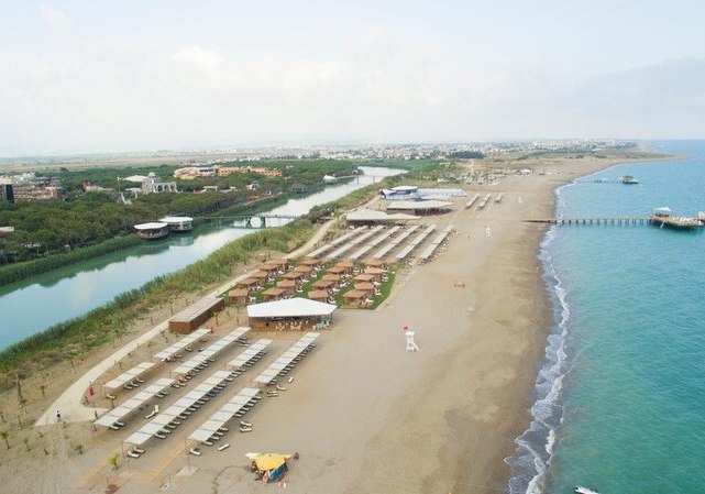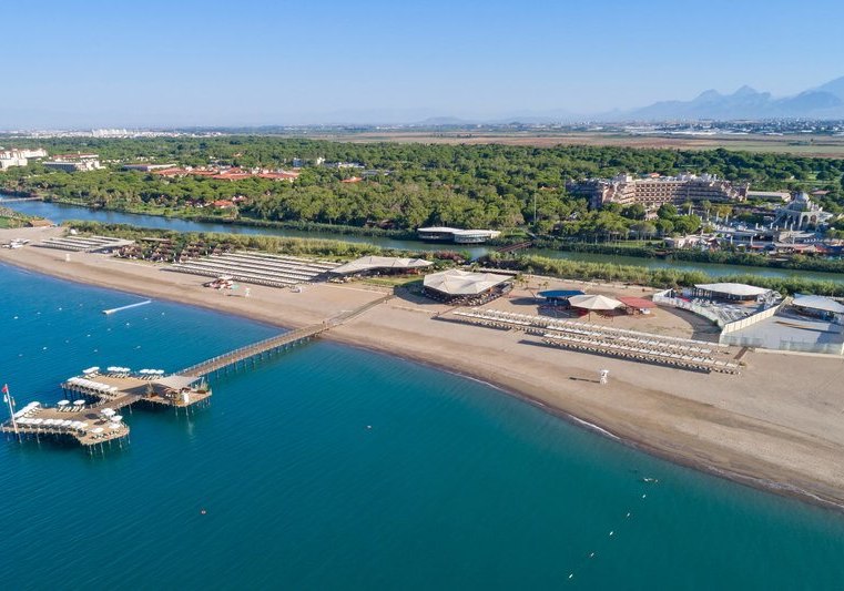 Das Resort liegt in Belek, eingebettet in einen Pinienwald, in erster Reihe zum Meer. Den kiesig-sandigen, etwa 415 Meter langen Strand erreicht Ihr über eine Brücke, die den Fluss Acisu überspannt. Belek ist rund 6 Kilometer entfernt, der Flughafen Antalya etwa 40 Kilometer. Highlight: Charakterweg – die Brücke über den Acisu prägt Euren Strandzugang deutlich.