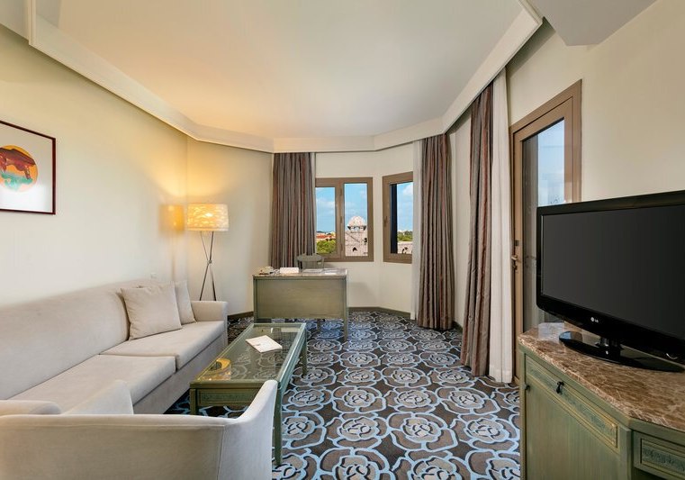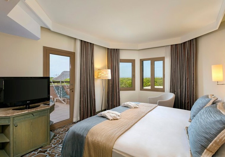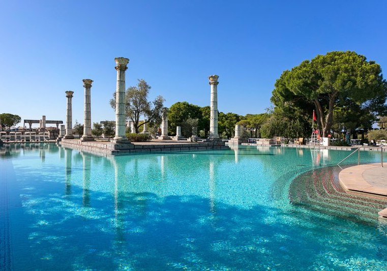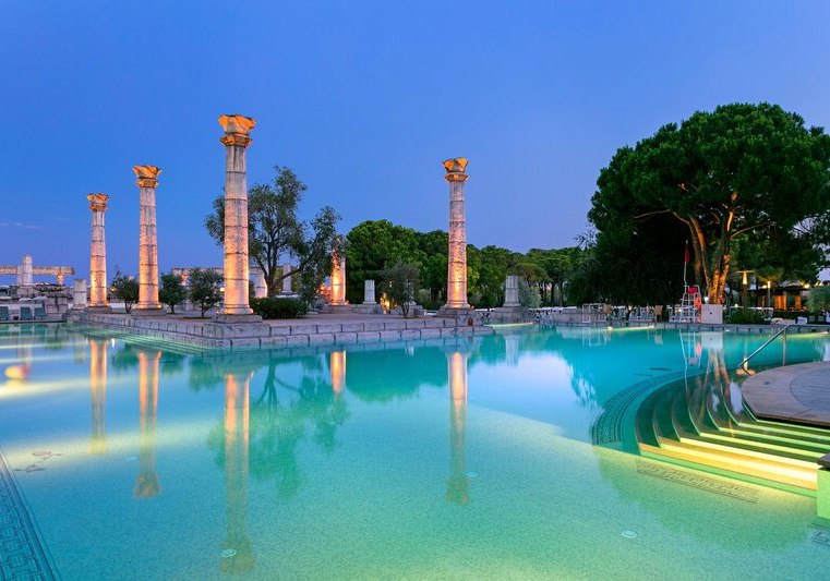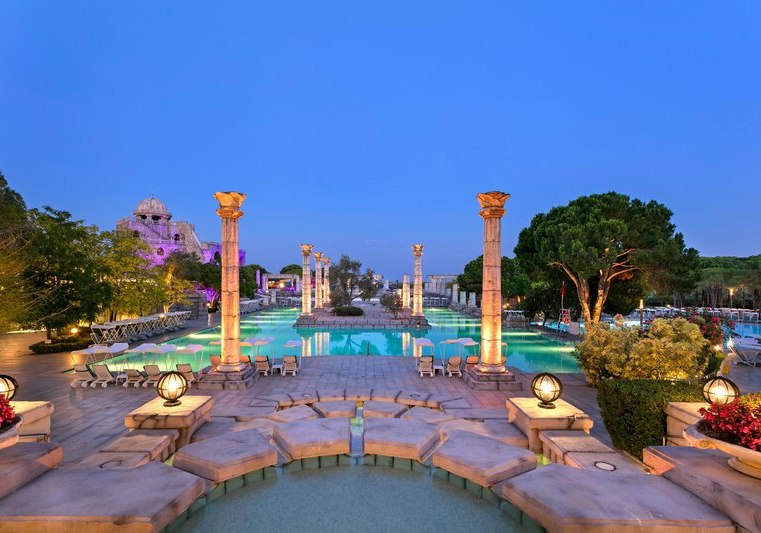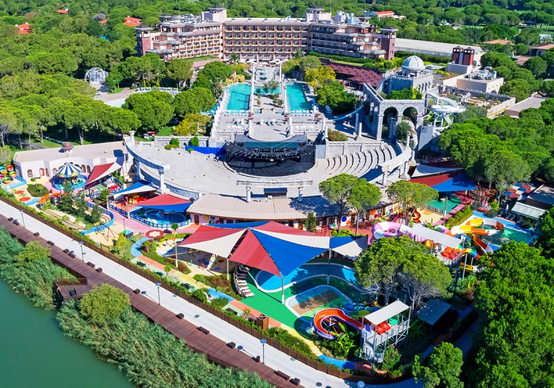 Im Xanadu Resort erwartet Euch ein weitläufiges Resort inmitten von Pinien, direkt an der ersten Strandreihe von Belek. Der feinsandig-kiesige Abschnitt ist über eine Brücke über den Fluss Acisu erreichbar, was dem Weg ans Meer eine markante Note verleiht. Familien, Paare und Aktivreisende finden hier klare Strukturen, viele Bereiche und ein transparent organisiertes Angebot. Highlight: Familien-Universum – Fancyland begeistert mit großzügigen Spiel- und Actionflächen.