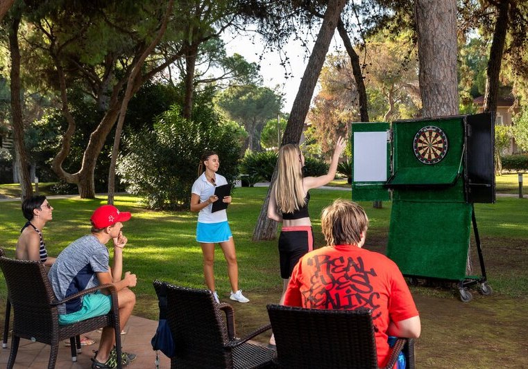 Das Angebot spannt den Bogen von Tennisplätzen mit Flutlicht bis Minifußball, Basketball und Bogenschießen. Indoor wie outdoor setzt Ihr auf Fitnesscenter, Aerobic, Stretching, Yoga sowie Tischtennis und Darts. Wassergymnastik bringt Bewegung in den Poolalltag. Highlight: Breiter Mix – Technik, Kondition und Geschick gleichberechtigt.