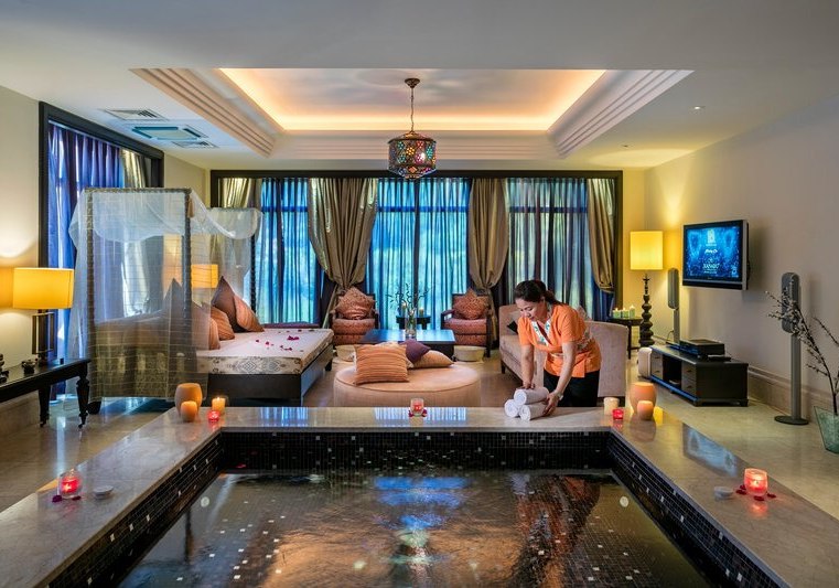 Im 3.500 m² großen „Shang Du“ Spa erwartet Euch ein klassischer Wärmeparcours mit Türkischem Bad, Sauna und Whirlpool; das Hallenbad ist teilweise beheizt. Anwendungen und Massagen ergänzen das Programm. Ein Friseur sowie Beauty-Leistungen runden den Bereich ab. Highlight: Großzügiges Spa – klar strukturiert mit Wärme- und Wasserzonen.