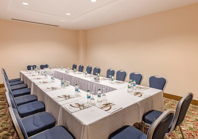 Das Ensemble aus Haupthaus und Bungalowgebäuden schafft Abwechslung zwischen lebendigen Zonen und ruhigen Plätzen. Ihr nutzt breite Servicewege von der Lobby bis zu den Terrassen, bewegt Euch zwischen Poolbereichen, Indoor-Angeboten und dem Steg am Strand. Businessgäste schätzen Konferenzräume und Businesscenter. Highlight: Klare Wege – Panoramaaufzüge verbinden Ebenen schnell und barrierearm im Haupthaus.