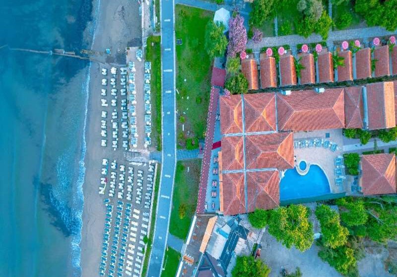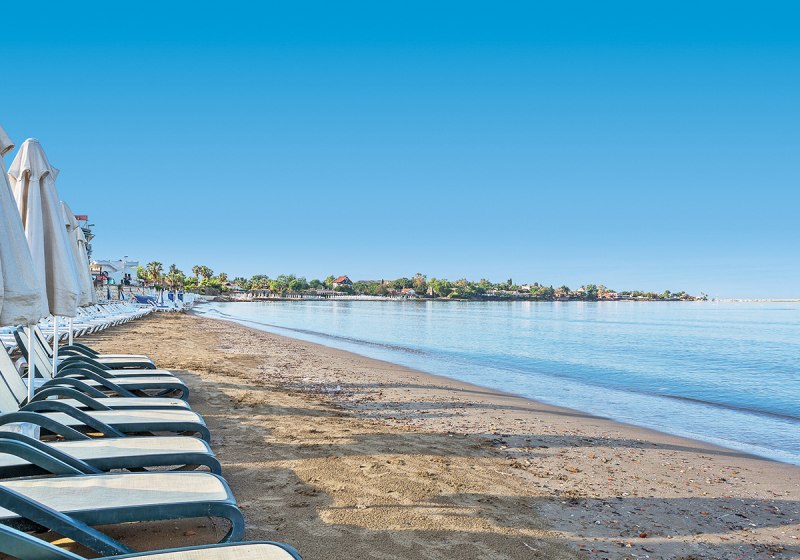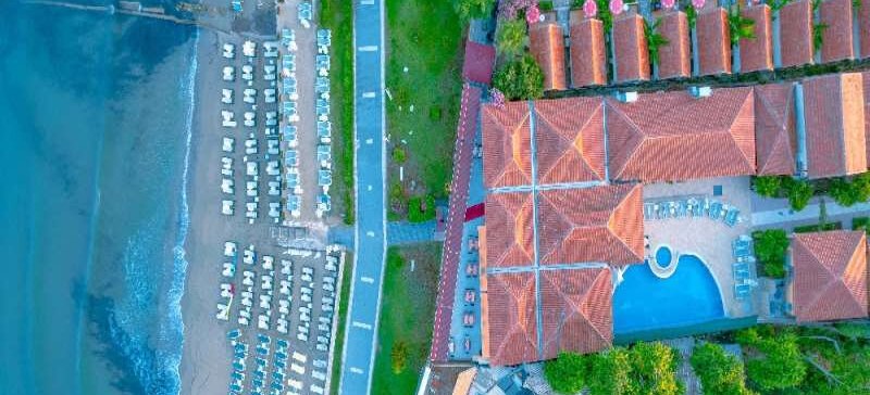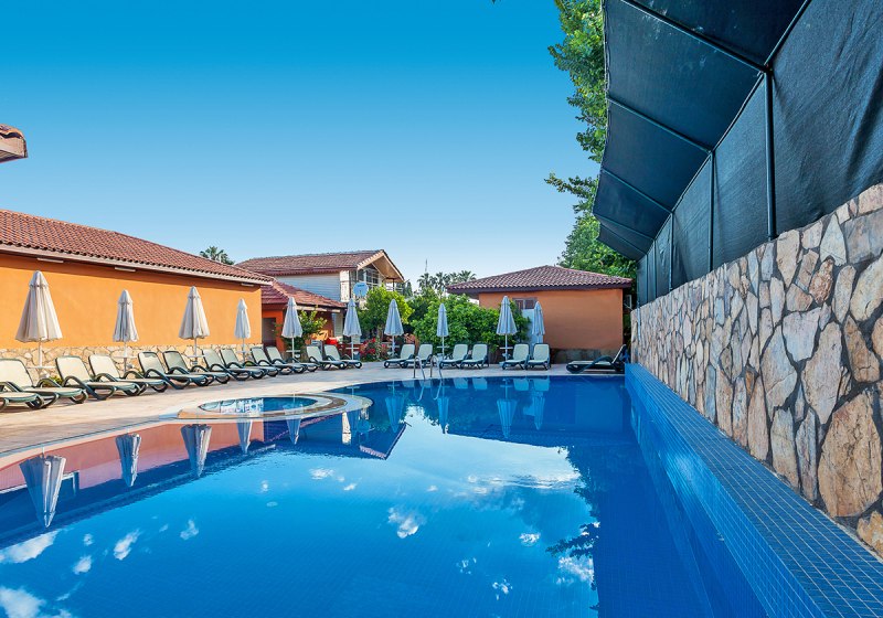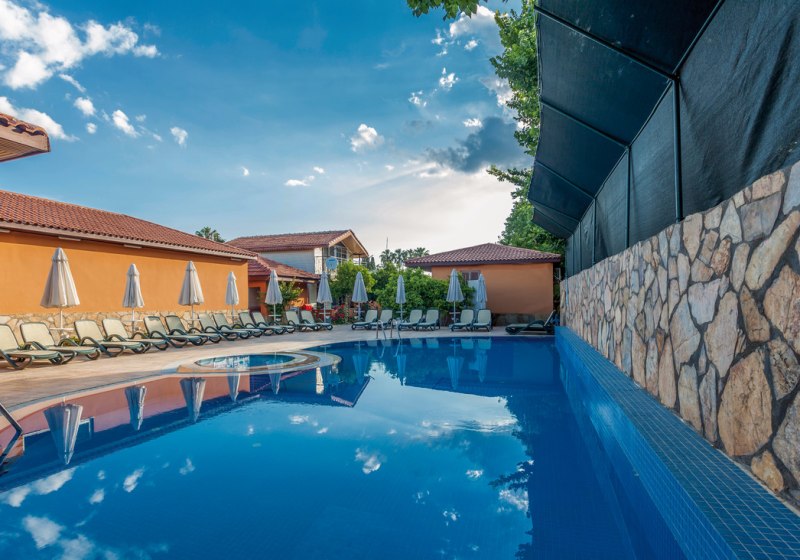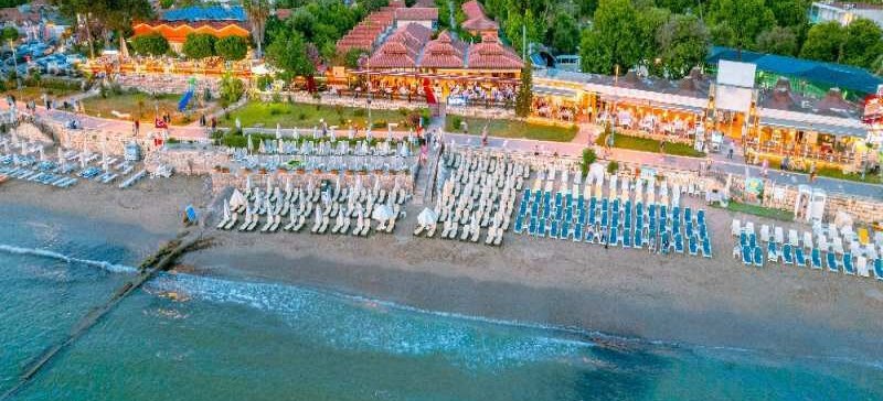 Im Özlem Garden Hotel wohnt Ihr in einer charmanten Bungalowanlage direkt am flach abfallenden Sandstrand, nur durch die Uferpromenade getrennt. Der Tag beginnt mit kurzen Wegen: vom Frühstück auf der Terrasse geht es durch den Garten zum Strand oder an den Außenpool mit Kinderbecken. Die Atmosphäre ist entspannt, die Wege kompakt, der Fokus klar auf Strandzeit und erholsamen Stunden.