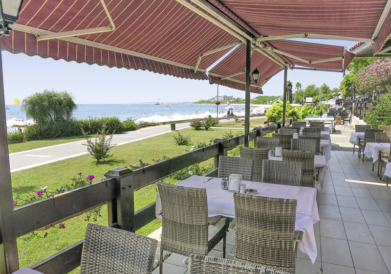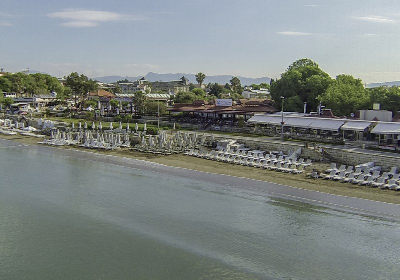 Ihr residiert im Westen der Halbinsel Side, direkt am flach abfallenden Sandstrand, nur durch eine Promenade getrennt. Minibusse und Taxis erreicht Ihr nach etwa 200 Metern. Restaurants liegen rund 200 Meter entfernt, Bars und Clubs etwa 500 Meter. Einkaufsmöglichkeiten befinden sich ebenfalls in rund 200 Metern Distanz.