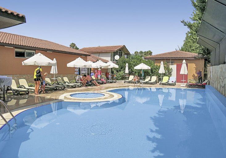 Özlem Garden Hotel verbindet Strandnähe, übersichtliche Wege und ruhige Stunden in einer Bungalowanlage mit Garten, Pool und Terrasse. Dank All-Inclusive, WLAN in der gesamten Anlage sowie Liegen und Schirmen an Pool und Strand genießt Ihr unkomplizierte Tage am Meer.