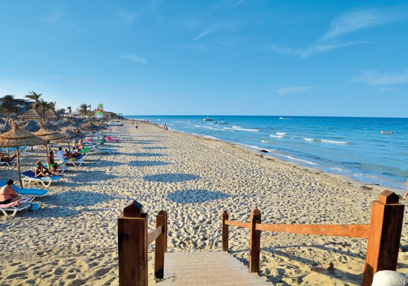 Ihr urlaubt auf Djerba direkt am hoteleigenen Sandstrand, nahe Midoun. Das Ortszentrum von Midoun liegt rund 6 Kilometer entfernt, Houmt Souk erreicht Ihr nach etwa 13 Kilometern. Zum Flughafen Djerba International sind es ca. 28 Kilometer. Das nächste Krankenhaus befindet sich in ungefähr 6 Kilometern Entfernung. Die Meeresnähe prägt den Aufenthalt: kurze Wege vom Zimmer an den Strand, Strandduschen und WCs sowie ein Badeplateau erleichtern entspannte Badetage. Die Lage eignet sich für ruhige Strandstunden ebenso wie für Ausflüge nach Midoun oder Houmt Souk.