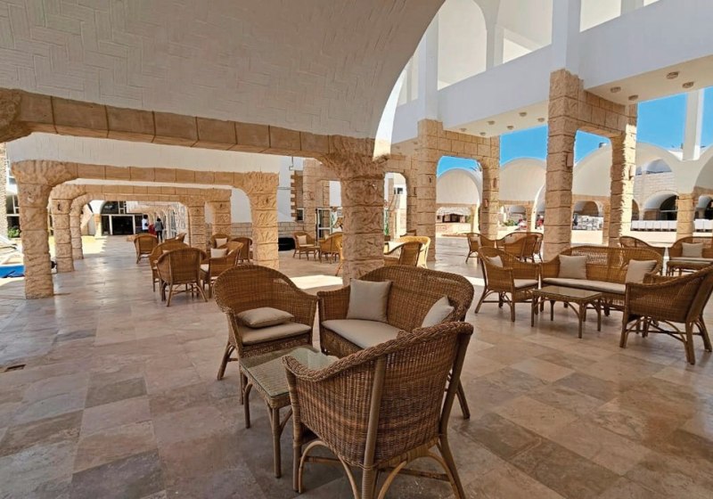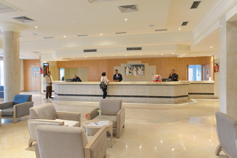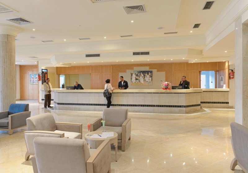 Die Anlage des Dar Jerba - Narjess ist klar gegliedert: Eine Lobby mit 24-Stunden-Rezeption, angrenzende Sitzbereiche und WLAN in Lobby sowie Außenbereichen bilden das funktionale Zentrum. Shops, Souvenir-Store und ein Supermarkt decken Alltagswege ab; ein Geldautomat, Gepäckaufbewahrung und Wäscherei erleichtern die Organisation. Für Termine stehen Konferenzräume bereit, während der hoteleigene Shuttleservice Mobilität ergänzt.