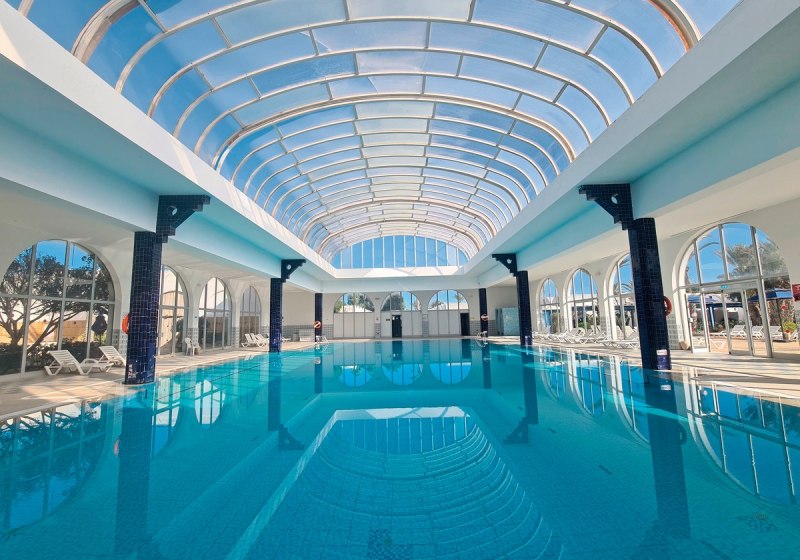 Wenn Ihr Tempo rausnehmen wollt, führt der Weg in den Wellnessbereich des Dar Jerba - Narjess. Ein Spa bildet den ruhigen Kern, ergänzt um Hamam und eine Auswahl an Massagen. Kosmetische Anwendungen und ein Schönheitssalon schaffen gepflegte Übergänge zwischen Strandtag und Abendprogramm. Für Gleichmaß im Tageslauf steht zusätzlich das Hallenbad bereit.
