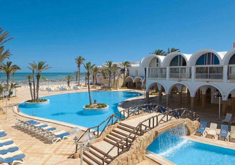 Im Dar Jerba - Narjess wohnt Ihr direkt am feinsandigen Strand von Djerba – mit dem Meer als ständigen Begleiter und einer Anlage, die Raum für gemeinsame Zeit bietet. Weitläufige Pools, Schattenplätze unter Schirmen und ein Garten schaffen entspannte Zonen, während Animation und Shows für Abwechslung sorgen. Familien profitieren von Familienzimmern mit Verbindungstür, Kinderpool, Spielplatz sowie Miniclub und Mini-Disco. Wer Aktivität sucht, findet Tennisplätze und vielfältige Sportangebote, wer Ruhe mag, zieht sich ins Hallenbad oder ins Spa zurück. Die Wege sind klar, die Atmosphäre angenehm unaufgeregt.