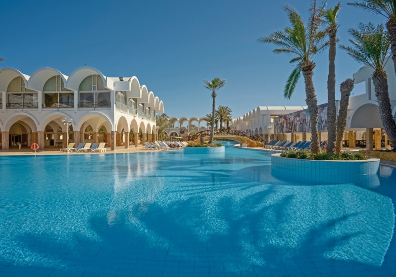 Dar Jerba - Narjess kombiniert Strandlage, verlässliche Verpflegung und ein breites Sport- sowie Familienprogramm. Mit Pools, Hallenbad und Spa ordnet Ihr Euren Tagesrhythmus flexibel zwischen Aktivität und Ruhe. Kurze Distanzen zu Midoun und dem Djerba Golf Club erleichtern Ausflüge.
