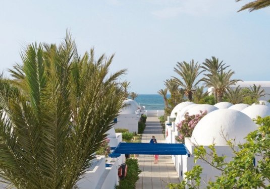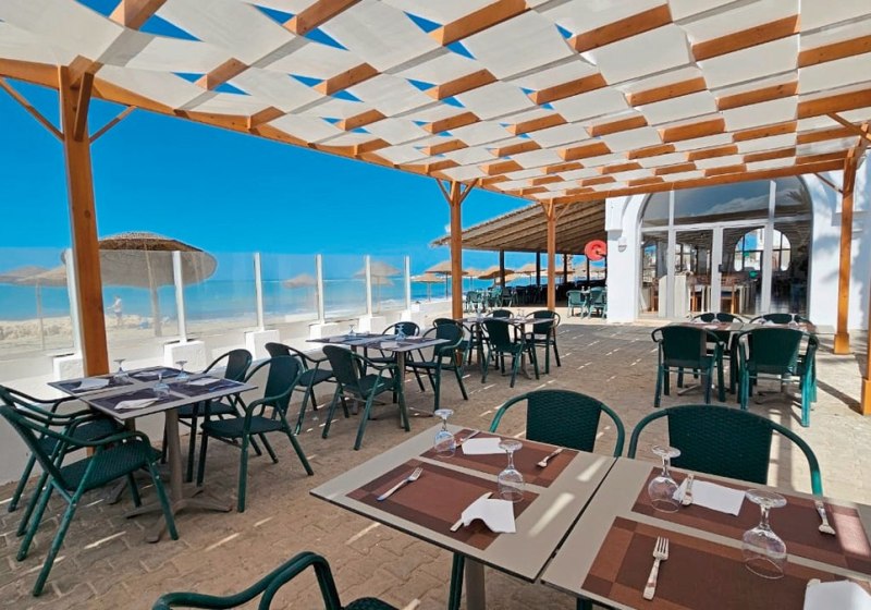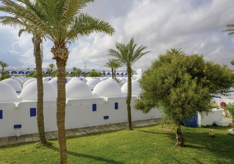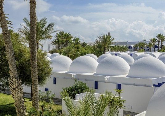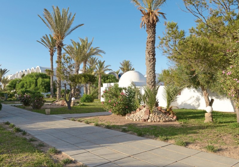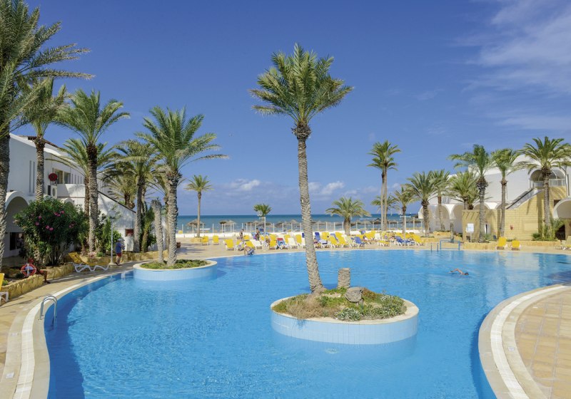 Direkt am Sandstrand von Djerba profitiert Ihr von der Lage, die Tagesplanung einfach macht: Morgens hinaus an die Küste, nachmittags zwischen Meer, Pool und Café wechseln, abends kurze Wege zurück. Das Umfeld ist gut angebunden: Bis Midoun sind es etwa 6 km, zum Djerba Golf Club rund 3 km. Wer mehr Inselatmosphäre sucht, erreicht Houmt Souk nach ungefähr 20 km; zum Djerba International Airport sind es etwa 30 km. So kombiniert Ihr Strandnähe mit Ausflügen in die Umgebung, ohne lange Transferzeiten zu investieren. Die Anlage selbst öffnet sich zum Wasser, während Gartenflächen und Terrassen in Richtung Pool und Strand führen. Highlight: Strandnah, nah am Golfplatz und mit kurzen Distanzen zu Midoun.