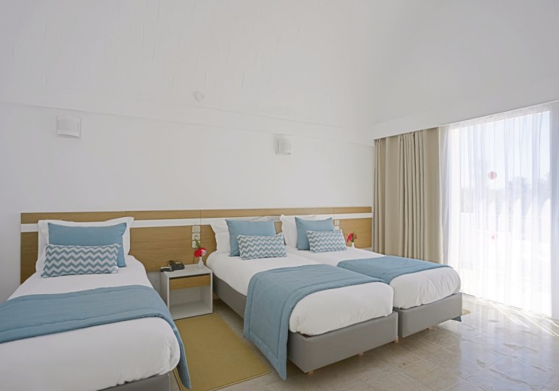 Für Familien stehen Zimmer mit Verbindungstür zur Verfügung; auf Anfrage wird ein Babybett gestellt. Wer die Küste in Szene setzen möchte, bucht eine Kategorie mit Meerblick. Einige Einheiten bieten getrennte Schlafzimmer, um Rückzug und Schlafroutine besser zu ordnen. So passt Ihr Raum und Ruhe Eurem Tagesrhythmus zwischen Strand, Pool und Programm an. Highlight: Familienzimmer mit Verbindungstür und Meerblick-Option für flexible Ansprüche.