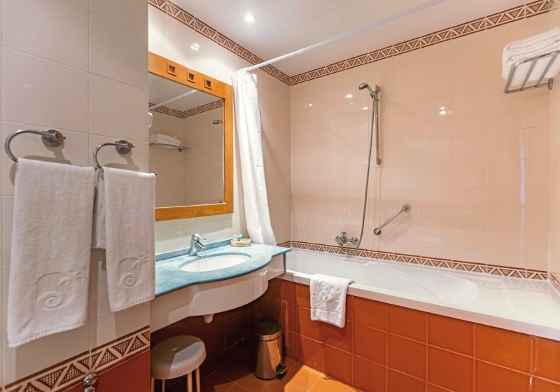 Die Zimmer messen etwa 32 Quadratmeter und sind mit Bad/WC, Föhn, Sat-TV, Telefon, Safe, Klimaanlage/Heizung sowie Minikühlschrank ausgestattet. Ihr entspannt auf Balkon oder Terrasse mit Blick in den Garten, gegen Aufpreis auch zum Pool. WLAN ist verfügbar. Highlight: Klare Grundausstattung, die den Alltag angenehm strukturiert.