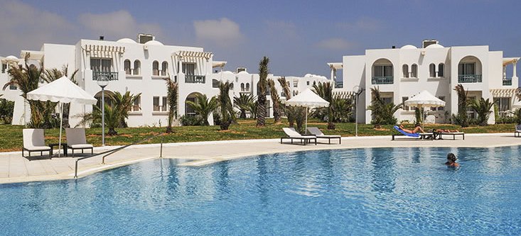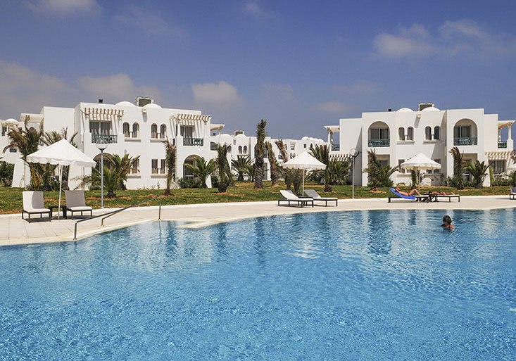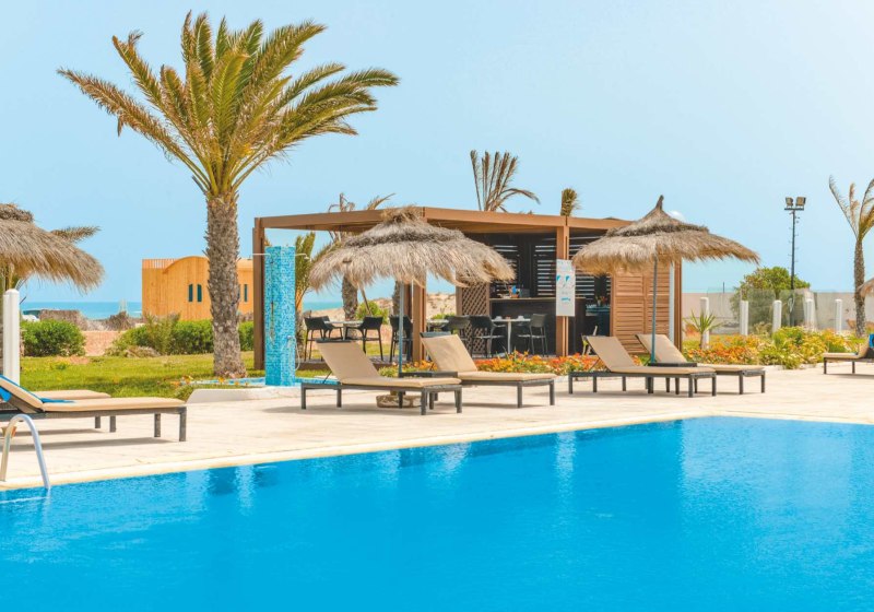 Im Vincci Helios Beach wohnt Ihr direkt am Sandstrand von Djerba auf einem weitläufigen Areal. Der Mix aus Hauptgebäude mit Aufzug und mehreren Bungalowbereichen gibt Euch Wahlfreiheit zwischen zentral und zurückgezogen. Besonders markant wirkt die exklusive Bungalowzone mit privatem Pool, eigener Bar und direktem Zugang zum Strand.