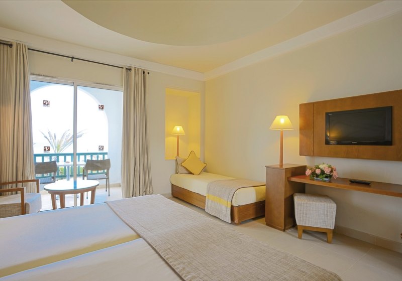Alle Zimmer bieten Bad mit WC, Sat-TV, Föhn, Telefon, Minikühlschrank, Safe sowie Klimaanlage/Heizung und einen Balkon oder eine Terrasse. Ihr wählt zwischen Doppelzimmern, Menzel-Varianten und Superior-Bungalows. Der Bungalowbereich punktet mit direktem Strandzugang und eigener Bar.