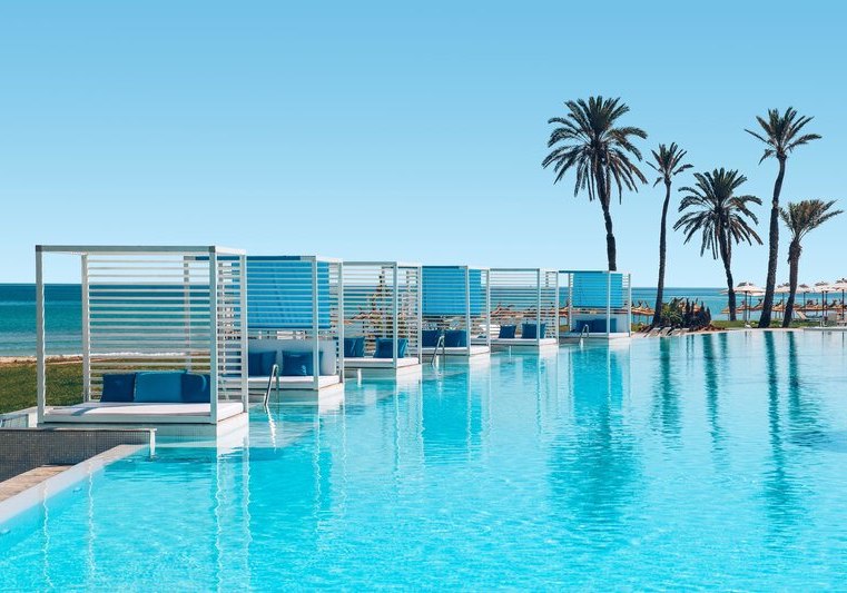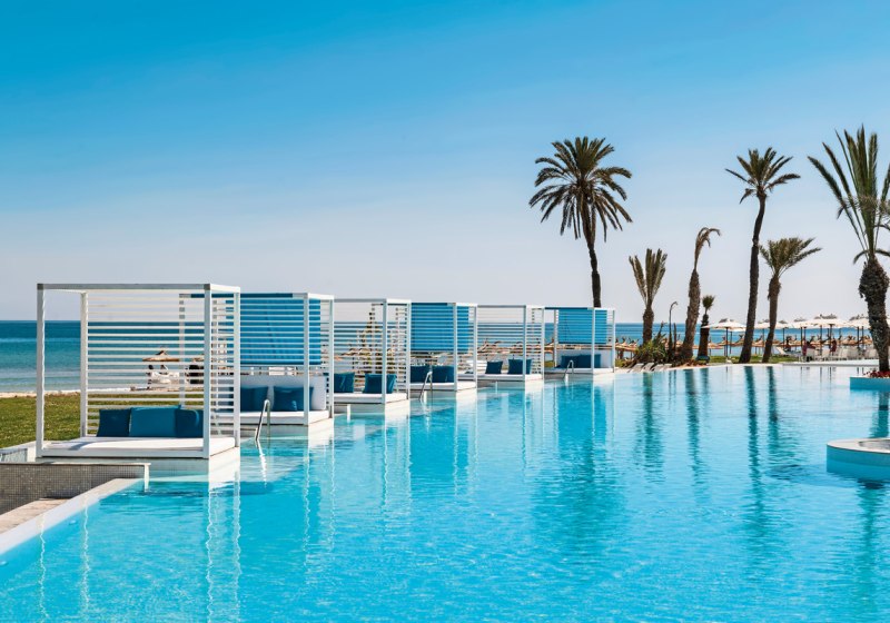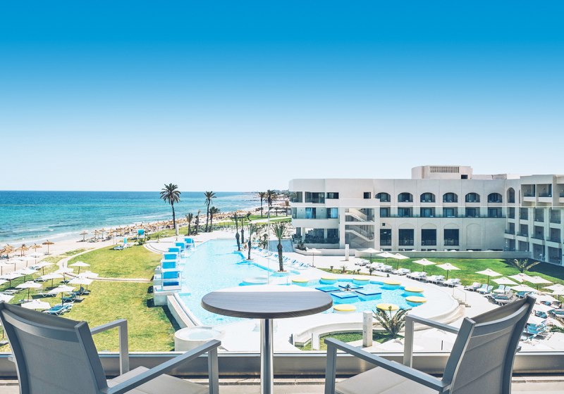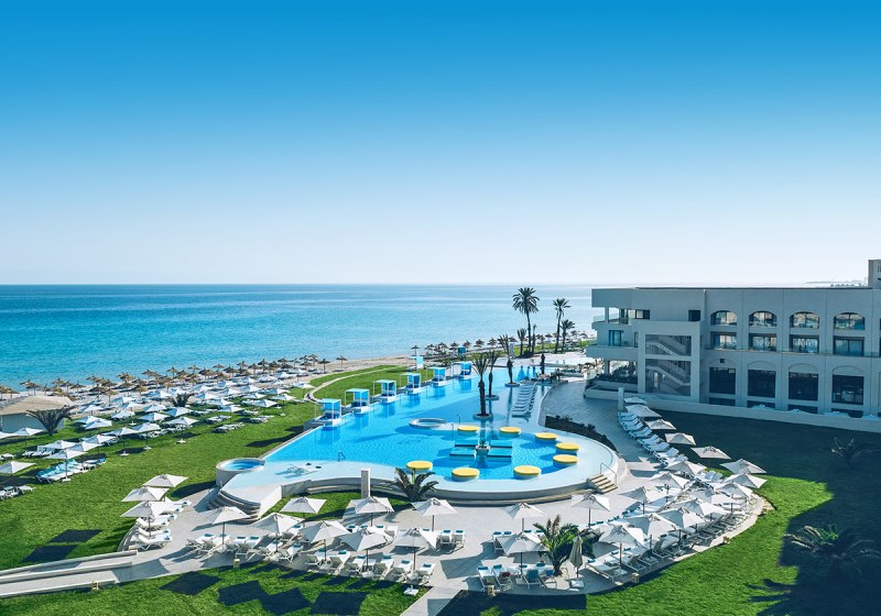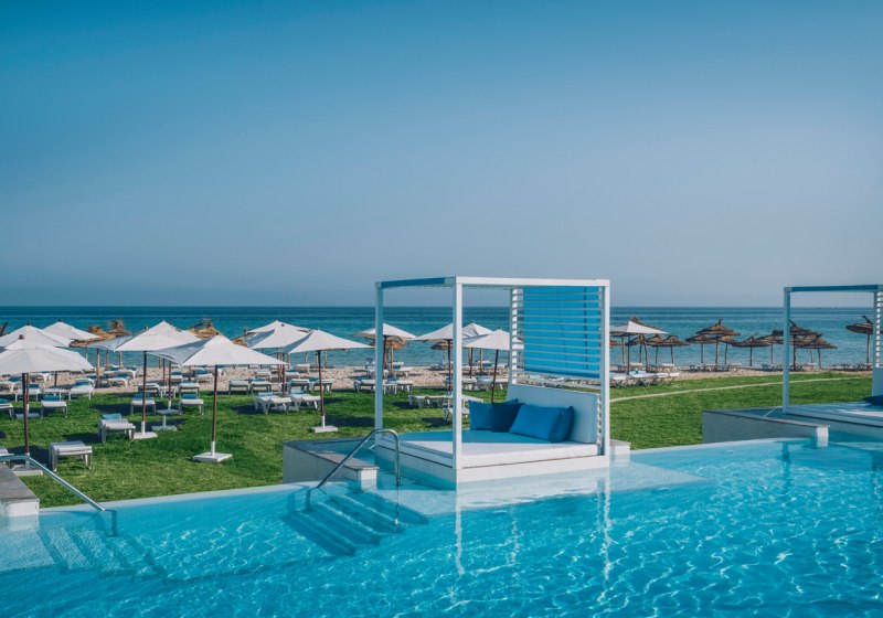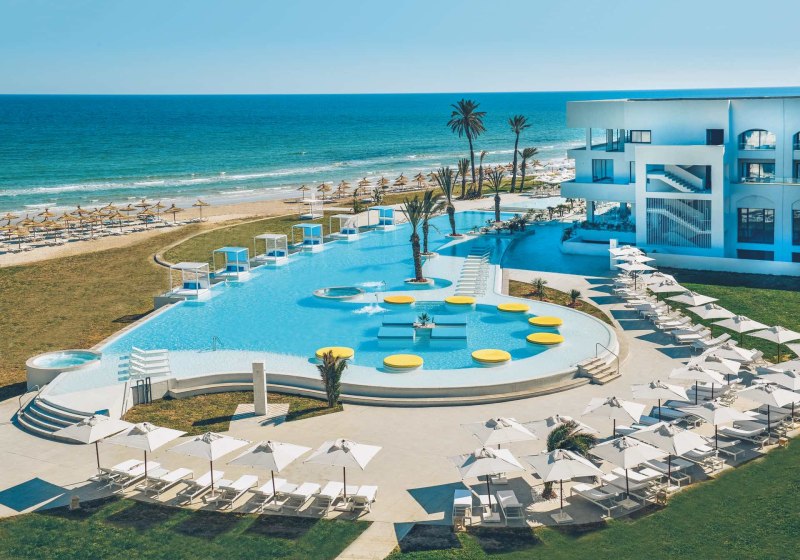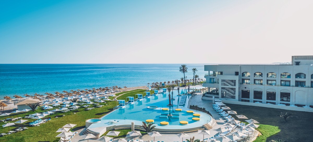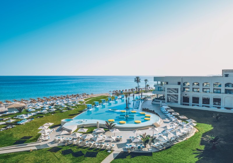 Iberostar Selection Kuriat Palace verbindet Strandlage mit einer klar strukturierten Resort-Architektur aus dem Baujahr 2019. Ihr wohnt in einem Haus mit 382 Zimmern, verteilt auf drei Etagen, und bewegt Euch zwischen luftigen Lobbybereichen, weitläufigen Poolzonen und direkten Wegen zum privaten Sandstrand. Familien finden mit Kinderpool, Wasserrutschen und Wasserspielplatz schnell ihren Rhythmus. Paare schätzen ruhige Ecken sowie den separaten Star-Prestige-Bereich mit Chill-out-Terrasse, balinesischen Betten und Jacuzzi.