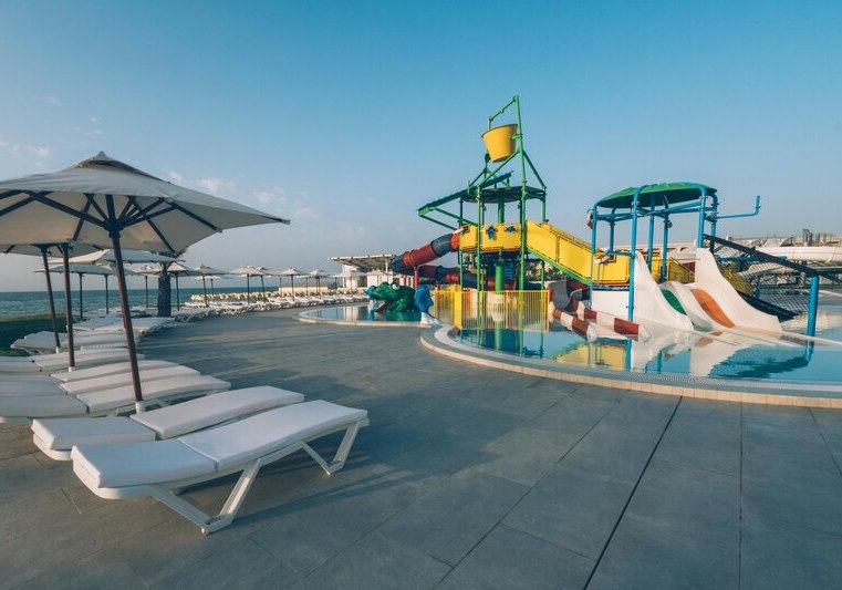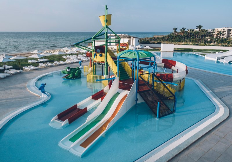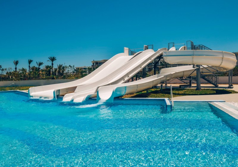 - Poolvielfalt: Drei Außenpools plus Kinderpool und Rutschen für mehr Abwechslung.