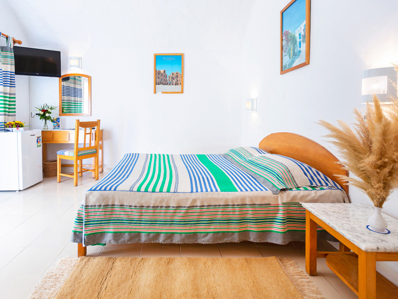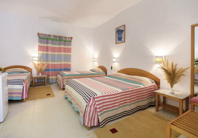 Ihr wohnt in Bungalowzimmern mit kleiner Terrasse – geradlinig, funktional und nah an Garten, Pool und Strand. Zur Ausstattung zählen Dusche oder Bad/WC, individuell regulierbare Klimaanlage/Heizung, Telefon, TV, Minibar und Safe. WLAN steht in den Zimmern zur Verfügung, Babybetten gibt es auf Anfrage.