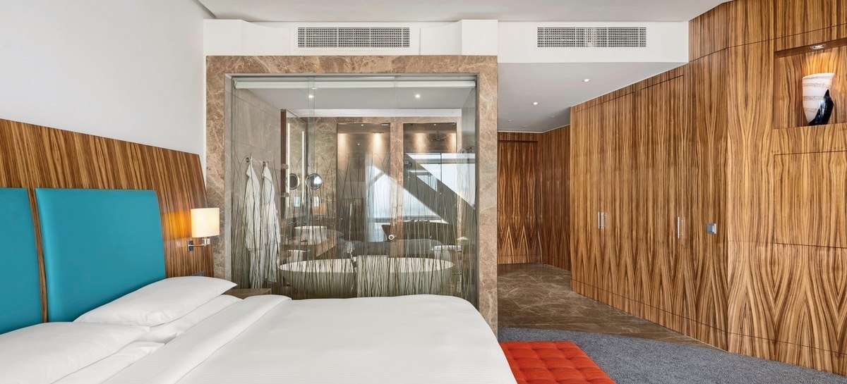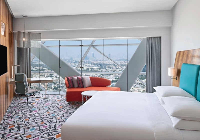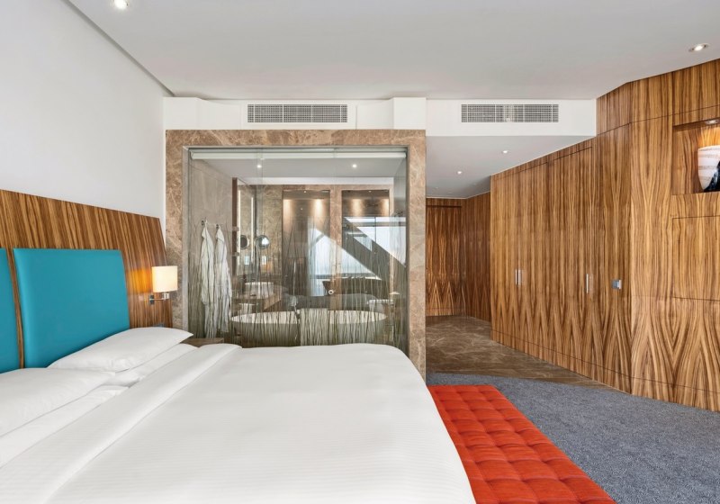 Das Haus bietet 188 Zimmer und Suiten in den Etagen 20 bis 33, mit Rezeption und durchdachten Arbeits- und Aufenthaltsbereichen. Kostenfreies WLAN in Zimmern und öffentlichen Zonen, Aufzüge, Concierge-Desk, Business-Center und Konferenzräume schaffen die Basis für fokussierte Tage und planbare Abläufe.