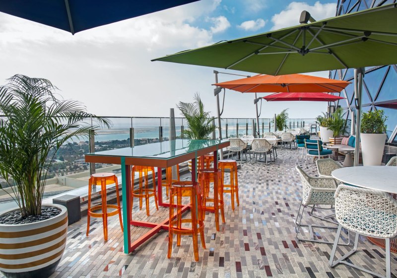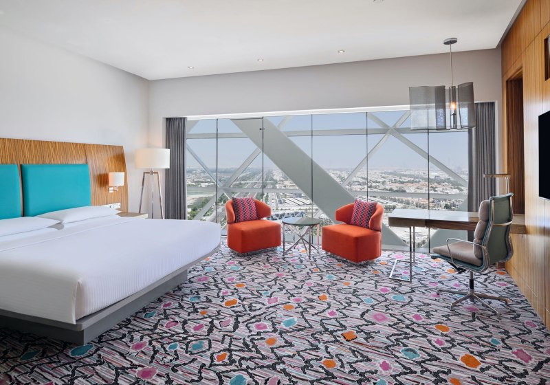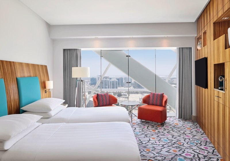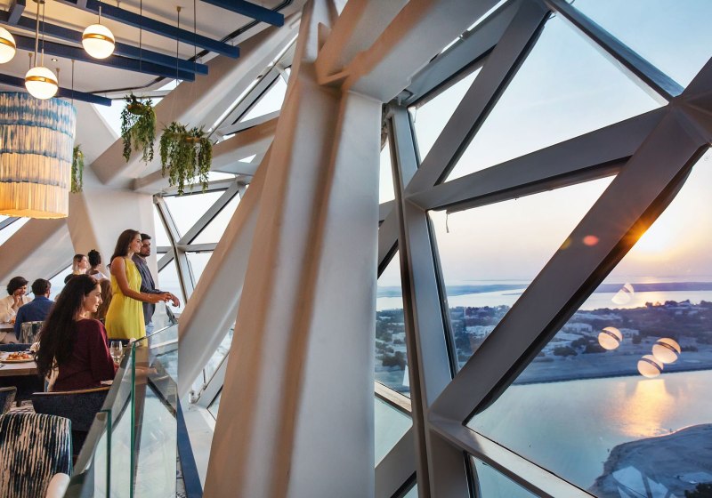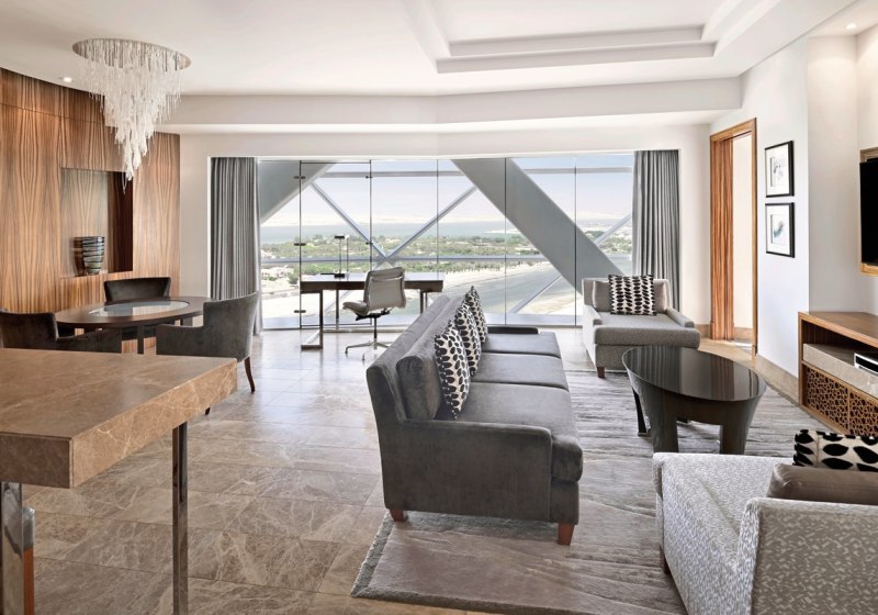 - Stadtblick hoch: Zimmer auf Etagen 20–33 eröffnen weite Blicke über Abu Dhabi.