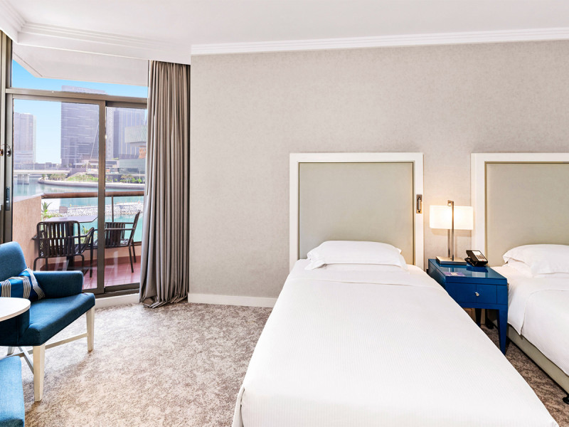 Im Beach Rotana wohnt Ihr im Zentrum von Abu Dhabi direkt am 430 Meter langen privaten Lagunenstrand. Der direkte Zugang zur Abu Dhabi Mall verleiht Eurem Aufenthalt Tempo und Komfort: Morgens ans Wasser, später zum Bummeln, zwischendurch ein Espresso in der Lobby-Lounge. Die Atmosphäre wirkt urban und zugleich entspannt, getragen von weiten Blickachsen, ruhigen Sitzinseln und einem temperierbaren Swimmingpool mit separatem Kinderbecken. Highlight: Direkter City- und Strandanschluss in einem Resort, praktisch und klar strukturiert.