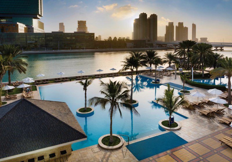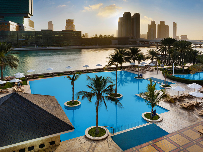 Ihr wohnt mitten in Abu Dhabi, mit direktem Zugang zur Abu Dhabi Mall – praktisch für spontane Einkäufe und kurze Wege zu Cafés. Dazu kommt der hoteleigene, 430 Meter lange Lagunenstrand direkt vor der Tür. Zum Flughafen Abu Dhabi (AUH) sind es etwa 33 Kilometer. Ein besonderer Pluspunkt: Der kostenfreie Transfer nach Fahrplan und Reservierung zu Yas Waterworld, SeaWorld Abu Dhabi und Ferrari World bindet Euch an große Freizeitattraktionen an. So kombiniert Ihr Stadt, Strand und Themenparks ohne Umwege. Highlight: City-Puls, Privatstrand und Freizeitparks in einem logischen Radius.
