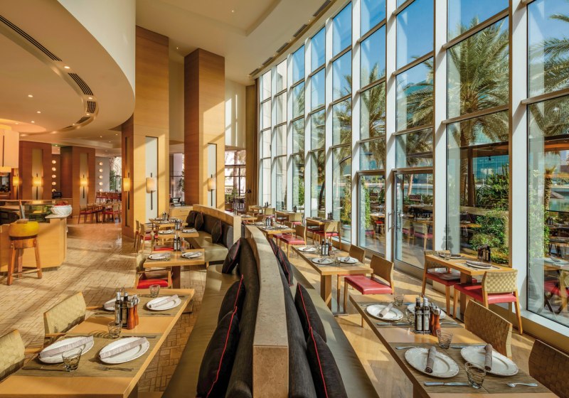 Kulinarisch spielt Beach Rotana seine Vielfalt aus: Zwölf Spezialitätenrestaurants und ein All‑day‑Dining-Restaurant stehen zur Wahl. Darunter Prego’s für italienische Küche, Rodeo Grill als Steakhouse, Trader Vic’s mit polynesisch‑französischem Akzent, Benihana für Sushi und Teppanyaki, das Brauhaus mit deutscher Küche, Finz für Seafood mit Overwater‑Setting sowie Indigo für indische Küche. Highlight: Breite Küchenvielfalt mit klaren Konzepten und Handschriften.