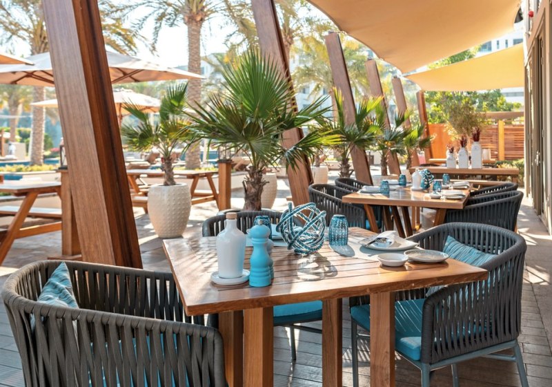 Vier Süßwasserpools, darunter ein integrierter Kinderpool, spannen den Bogen zwischen Strand und Garten. Am Pool und am Strand stehen Liegen, Schirme und Badetücher bereit. Die Infrastruktur reicht vom Concierge- und Einparkservice über Business-Center und Konferenzräume bis zum hoteleigenen Shuttleservice. Wenn Ihr entspannte Abende mögt, findet Ihr diese in der Rooftop-Bar/Lounge oder in der stilvollen Bibliothek. Highlight: Direkter Strandzugang mit inkludierten Liegen und Schirmen.