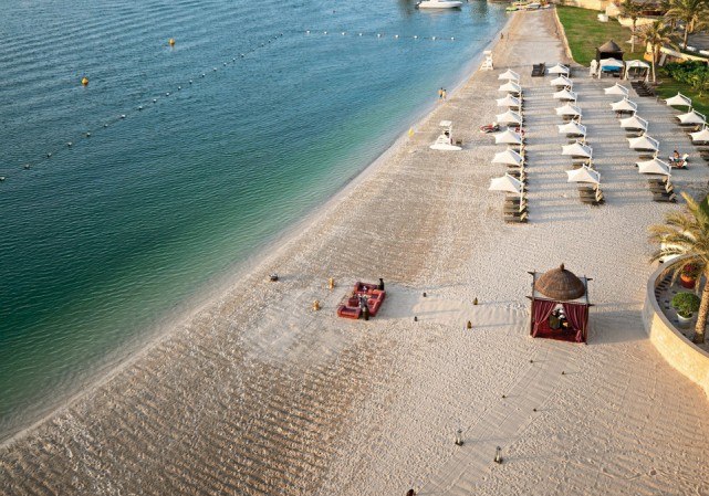 Shangri-La Qaryat Al Beri, Abu Dhabi verbindet direkte Strandlage in Abu Dhabi mit Blicken zur Sheikh-Zayed-Moschee, zwei Pools, starker Küche und einem fokussierten Spa. Familien profitieren von Kinderbetreuung und Spielbereichen, während Paare die ruhigen Wasserzonen und die abendliche Baratmosphäre schätzen.