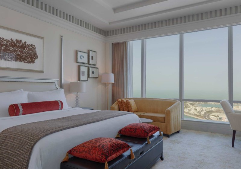 Im The St. Regis Abu Dhabi wohnt Ihr in den Nation Towers direkt an der Corniche – mit weitem Blick über den Arabischen Golf und privatem Zugang zum Beachclub Nation Riviera. Die großzügigen öffentlichen Bereiche wirken repräsentativ, ohne Distanz zu schaffen. Ihr bewegt Euch nahtlos zwischen Strandmomenten, urbanem Puls und der Ruhe eines klassisch geführten Hauses.