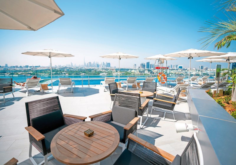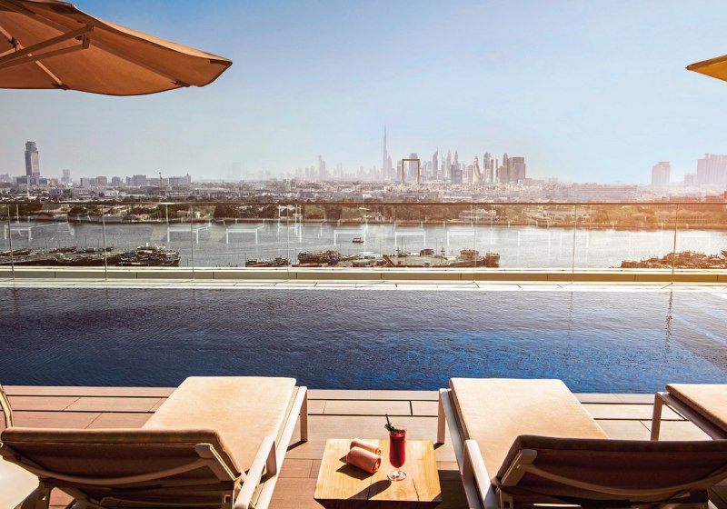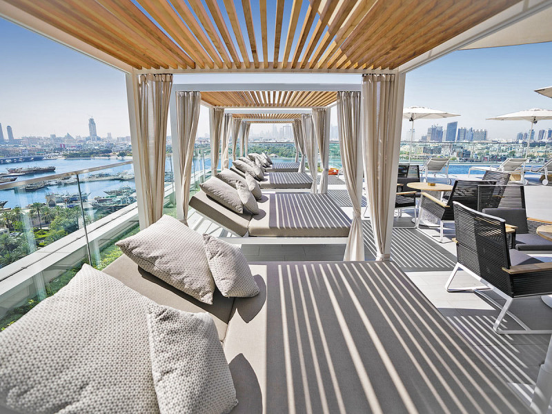 Die öffentlichen Bereiche sind aufgeräumt und funktional, vom eleganten Lobby-Bereich bis zu den Außenterrassen der Restaurants. Mit 190 Zimmern bleibt der Rahmen übersichtlich, der Ablauf effizient. Ein hoteleigener Shuttle verbindet Euch mit Dubai Mall, Mall of the Emirates und dem Kite Beach. Highlight: 5-Sterne-Adresse am Creek mit Skyline-Blick und bequemen Shuttles zu Dubais Hotspots.