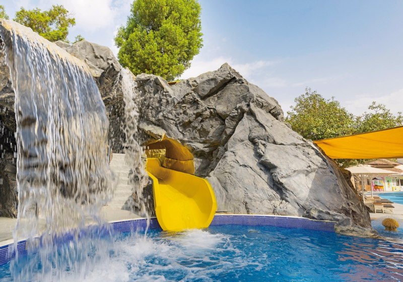 • Liegestühle • Außenpool • Sonnenschirme • Poolbar • Sonnenterrasse • Badetücher • Wasserrutsche • Pool