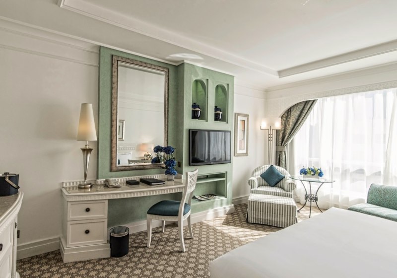 Die Zimmer sind auf Klarheit und Funktionalität ausgelegt: Bad mit Dusche/WC, Föhn, Bademantel und Slipper, dazu Klimaanlage, Safe, LCD-Sat-TV und Telefon. Minibar (gegen Gebühr), Kaffee-/Teezubereiter sowie Bügeleisen/-brett und Schreibtisch strukturieren den Alltag. WLAN ist inklusive, schallisolierte Ruhe gehört ebenso zur Ausstattung.