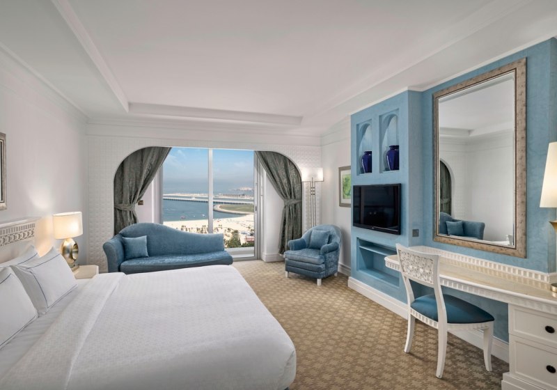 Kulinarisch öffnet sich Euch eine Welt aus 13 Restaurants, Bars und Lounges – vom ganztägigen Al-Dhiyafah über die Polo Bar bis zur Swim-up Poolbar. Das Elixir Spa, Tennis- und Squashplätze sowie Beachvolleyball setzen Akzente für aktive Tage; abends rundet Live-Unterhaltung in den Bars den Rhythmus ab. WLAN nutzt Ihr im ganzen Haus kostenfrei, die Traveller’s Lounge und kleine Shops wie Juwelier, Minimarkt und Friseur liegen bequem im Herzen des Resorts. Highlight: Direktlage am Jumeirah Beach mit vielseitigen Pools und klar strukturierten Rückzugsbereichen.