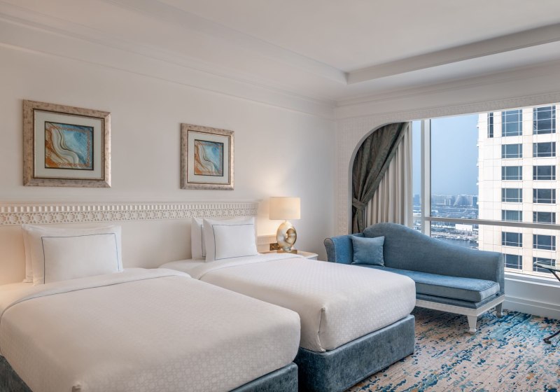 Im Al Habtoor Grand Resort, Autograph Collection wohnt Ihr direkt am Strand und zugleich nah am pulsierenden Dubai Marina-Viertel. Zwei elegante Türme, großzügige Außenbereiche und klare Linien prägen die Atmosphäre. Zwischen temperiertem Süßwasserpool, Adults-Only Pool auf der dritten Etage und weitläufigen Liegeflächen findet Ihr Raum für Ruhe oder für den kurzen Sprung ins Wasser. Familien steuern den Miniclub und das Kinderbecken mit Wasserrutsche an, während Strandliebhaber die bereitgestellten Liegen, Sonnenschirme und Badetücher schätzen.