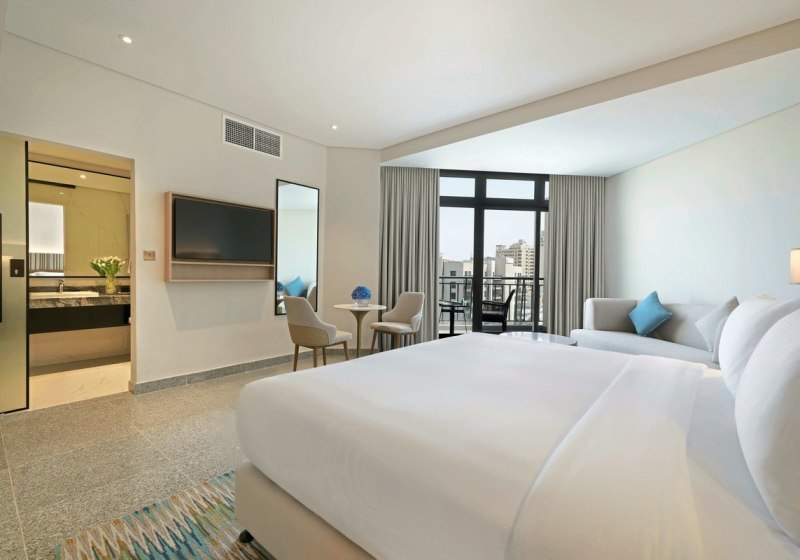 Die Atmosphäre wirkt urban und aufgeräumt: kurze Wege, verlässlicher Service, viele praktische Details – vom Concierge über den Souvenirshop bis zum Business-Center. Zwischendurch stärkt Ihr Euch im Café, an der Bar oder an der Poolbar. Abends zieht Ihr Euch in kompakte Doppelzimmer oder die Variante mit Balkon zurück. Der Fitnessbereich bietet einen sportlichen Ausgleich, bevor Ihr den nächsten Tag zwischen City-Highlights und Strandstunden plant.